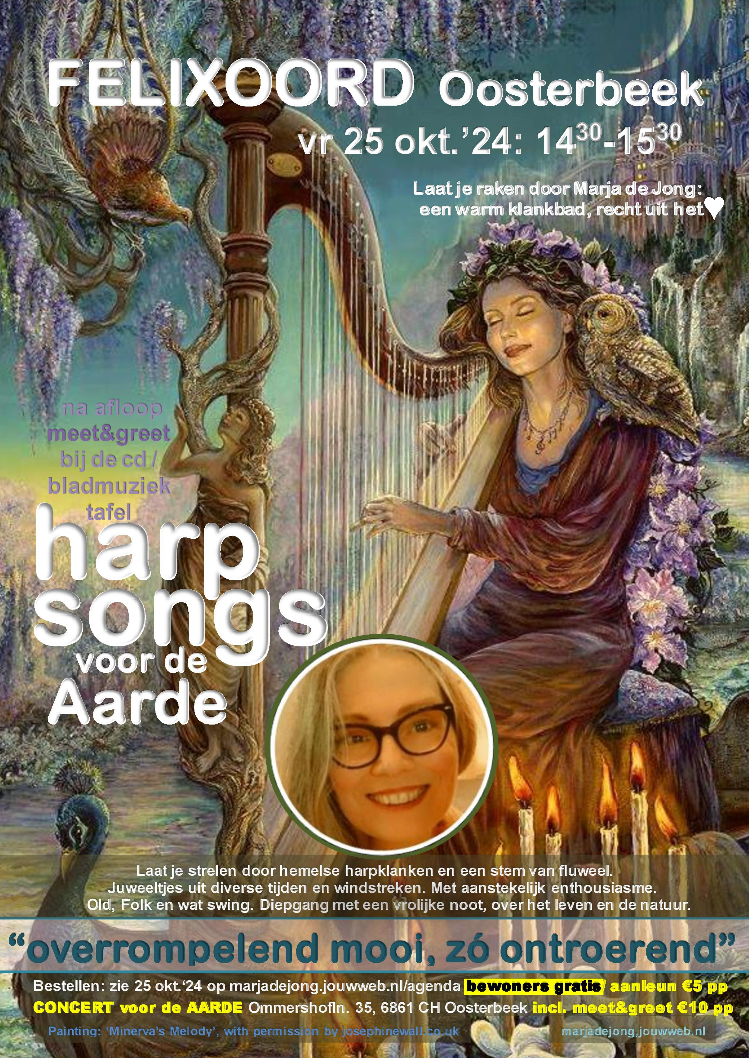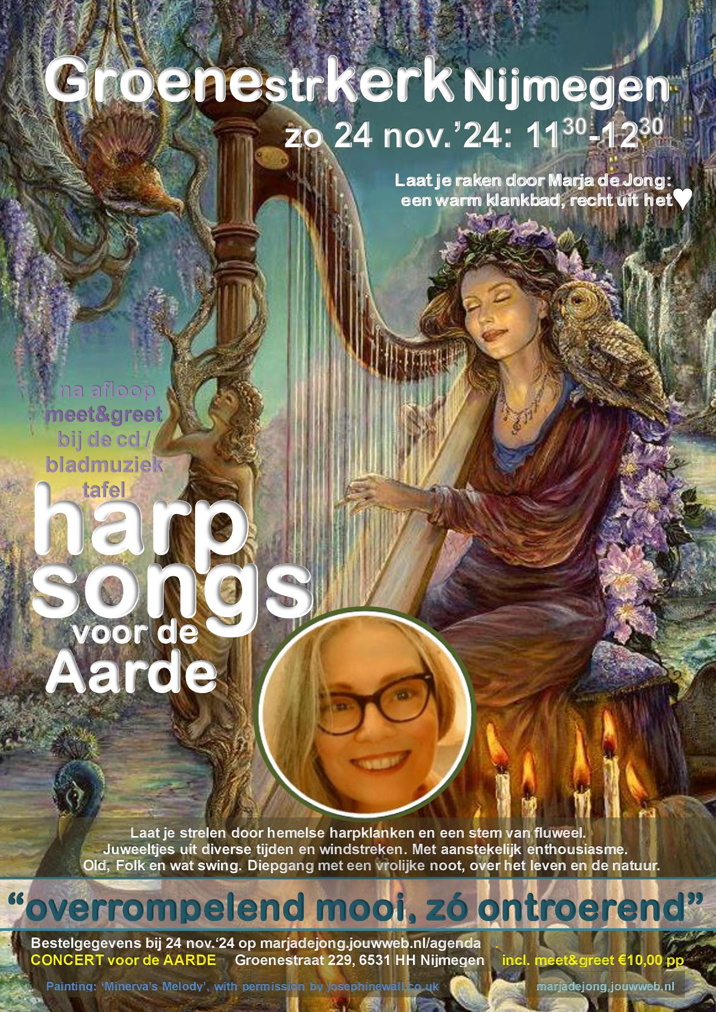 Op 11 oktober geeft Marja de Jong een concert in Sarvata te Nijmegen, als onderdeel van de Geoweek. Meer informatie op de poster. https://marjadejong.jouwweb.nl/agenda