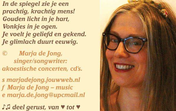 U vindt Marja de Jong op facebook, Linked In, soundcloud, muziekencyclopedie, spiritueel ondernemers netwerk. U kunt een contactverzoek doen.