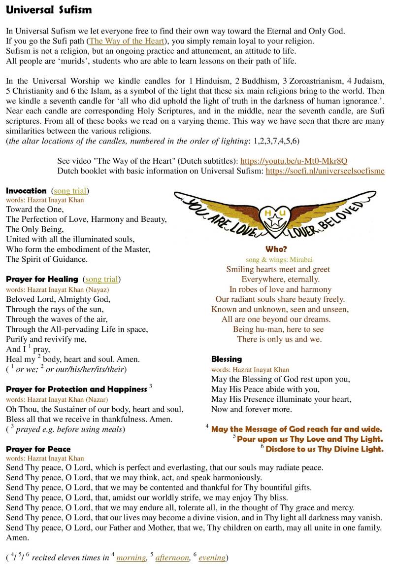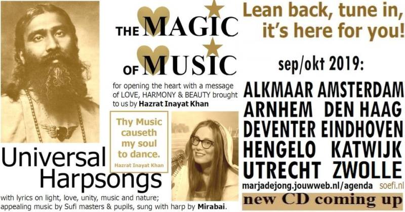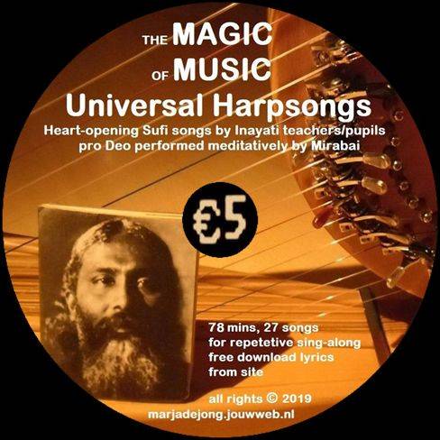 6. "Marja de Jong ist eine talentierte Interpretin des Sufismus nach Hazrat Inayat Khan. Sie entführt Sie auf originelle, musikalische Weise in die Welt der universellen Liebe. In professionell gesungener und freudig gespielter Musik, Text teilweise selbst geschrieben, Musik teilweise selbst geschrieben, manchmal arrangiert, singt sie über die Einheit, die unerschöpfliche Quelle des Lebens, den Weg des Herzens. Sie lädt dich ein, die CD-Texte herunterzuladen und mit anderen zu singen. Um mehr Menschen die schöne Botschaft vorzustellen, die der Sufismus enthält. Eine Botschaft, die besetzt ist und die ermutigt wird, dies kostenlos zu verbreiten. Sehr zu empfehlen." Bep Ragini Pierik am 15. September 2019, Saint Joseph Church Zwolle, Konzert + CD Magic of Music. - E-Mail 5. Oktober 2019.