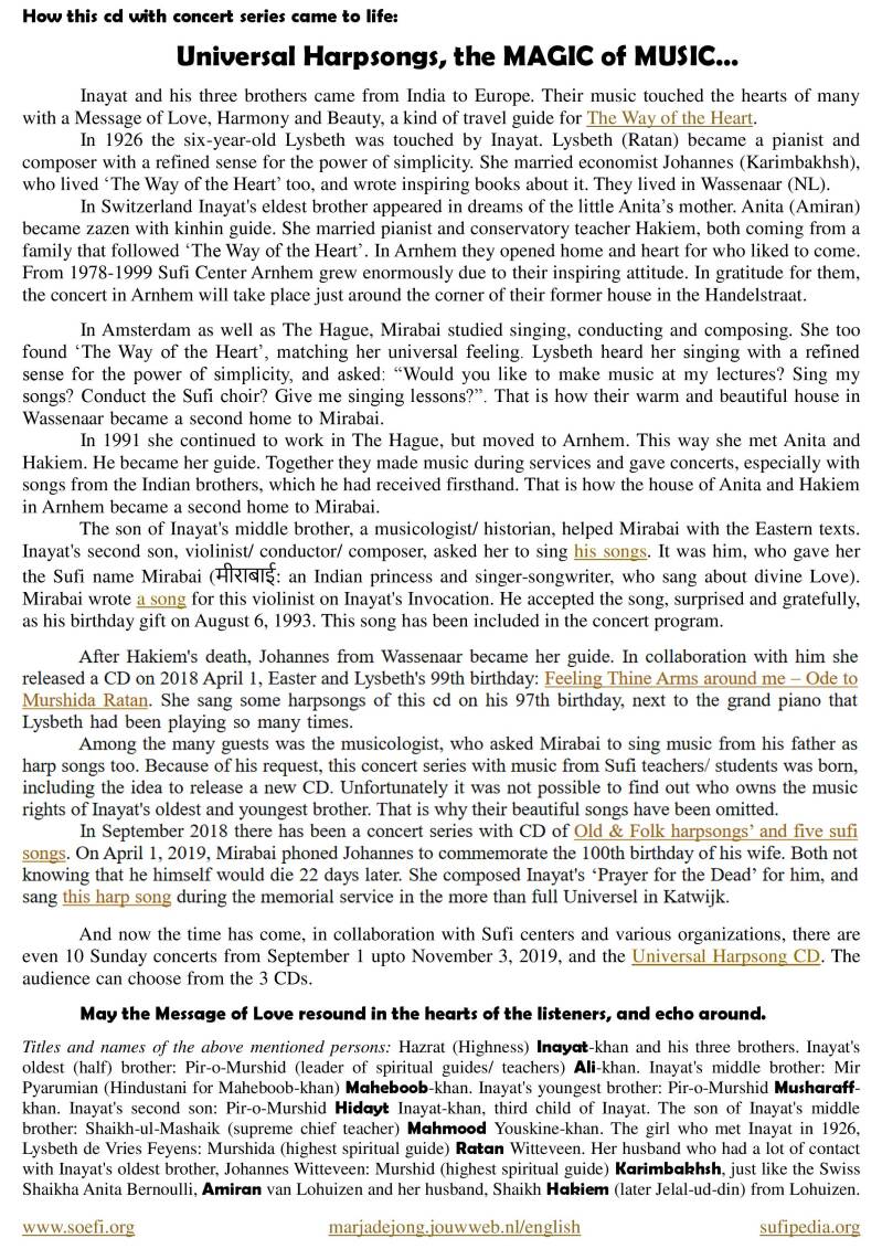 10. "Liebe Marja/ Mirabai, danke, dass du so viel wundervolle Musik von unserem Murshid, seiner Familie und dir selbst gespielt hast. Du hast auch die neuen Leute tief berührt." Mangala - E-Mail 7. Oktober 2019.