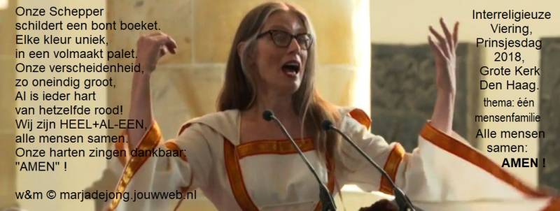 4. "Liebe Marja, letzten Sonntag (29. September 2019) durfte ich ein ganz besonderes Konzert genießen, das Sie in der Kloosterkerk in Utrecht gegeben haben. Was für eine schöne und besondere Stimme (die mich an Aafje Heynis erinnerte) haben Sie, Marja. Und was für eine großartige Möglichkeit, uns mit hauptsächlich Sufi-Texten zu einem Teil der schönen Musik zu machen. Aber wir haben auch Ihre eigenen Texte und Kompositionen genossen. Kurz gesagt: Ich habe genossen, Mirjam Kraamer "- E-Mail 30. September 2019.