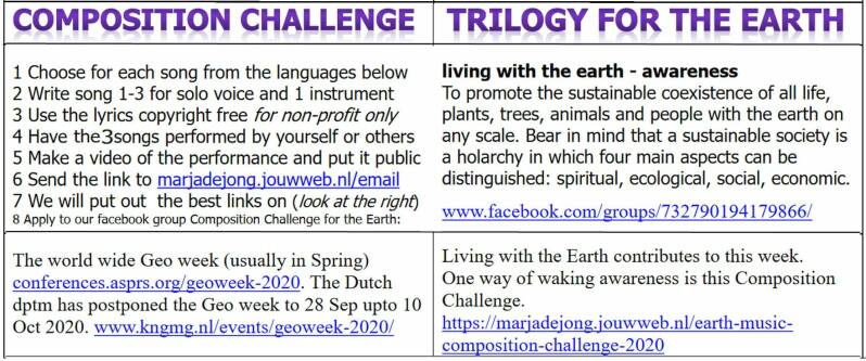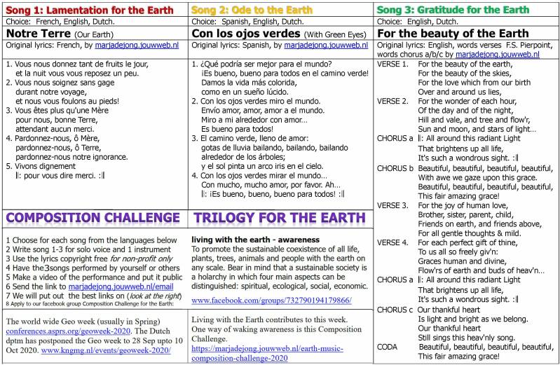 2 Write your Earth Trilogy for solo voice and one instrument