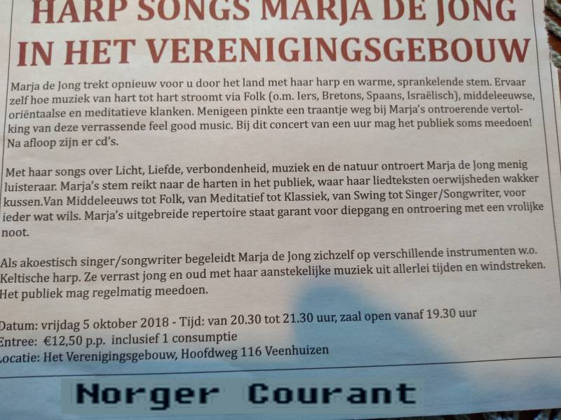 Doetinchemse krant, 24-10-2018. Marja de Jong 'HARP CONCERT'. ☺