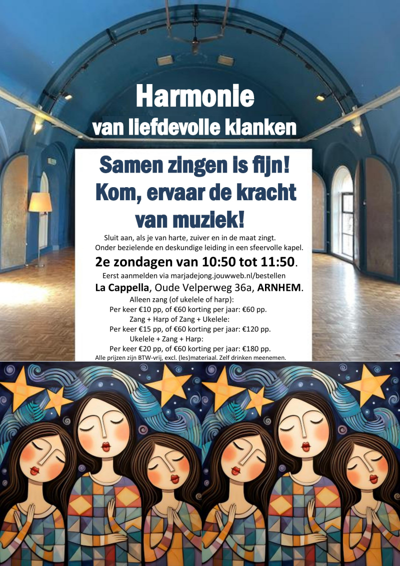 Arnhem, La Cappella, elke 2e zondag van de maand van 10:30-11:30. Eigen bijdrage €5 per keer. AANMELDEN